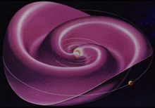 The heliospheric current sheet extends to the outer reaches of the Solar System, and results from the influence of the Sun's rotating magnetic field on the plasma in the interplanetary medium