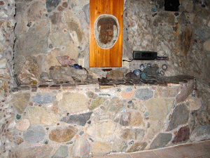 Andy: - We're just guessing but I would say there are about 10,000 gem rocks, minerals, and fossils embedded in the walls and steps. That includes tumbled stones